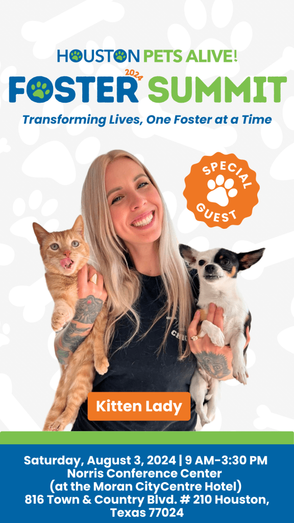 If you foster companion animals don’t forget to sign up for Houston Pets Alive Foster Summit on August 3rd.