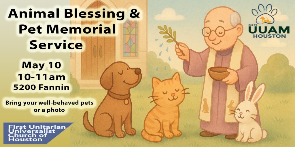 You’re invited to our Animal Blessing & Pet Memorial Service—a heartfelt gathering to honor the animals we love and remember those we’ve lost. We’ll begin with a gentle grief circle to share stories and healing, followed by blessings for the pets who join us. Bring your well-behaved, social animals, (or a photo) and enjoy snacks, coffee, and a sense of community among fellow animal lovers. All are welcome.